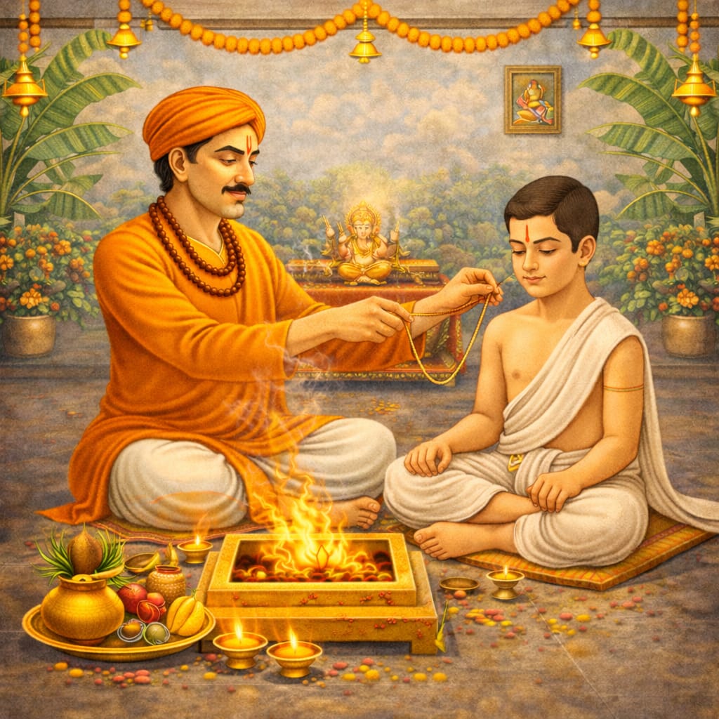 Upnayan Sanskar balak ke jeevan mein anushasan, gyan aur sanskaron ki neev rakhta hai.